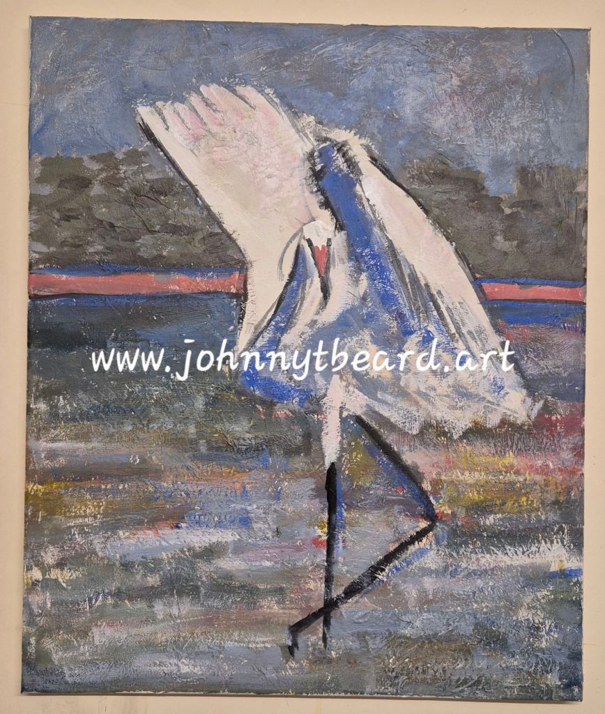Painting on textured canvas.